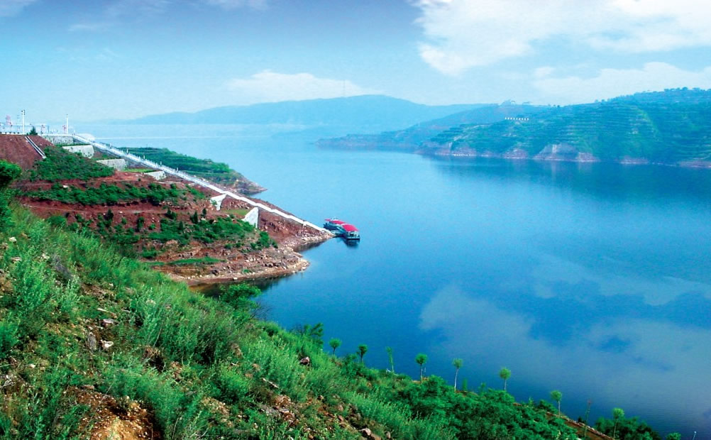 黄河小浪底水利枢纽是治理开发黄河的关键性工程,属国家“八五”重点项目,工程于1997年截流,2001年底竣工。小浪底位于河南洛阳以北40公里的黄河干流上,上距三门峡水库130公里,下距郑州花园口115公里,是黄河干流三门峡以下唯一能够取得较大库容的控制性工程。 黄河小浪底水库内大量的半岛、孤岛、险峰,使自然景观近有曲折蜿蜒的河湾,远有烟色浩淼的湖面。从码头登舟,击水搏浪,出入高峡平湖,观赏沿岸山水风光,尽情领略母亲河的风采,以景观上的美、幽、奇、胜、典满足人们高尚的享受和回归自然的追求,在风格上既有田园风情的古朴典雅,又有现代时尚的豪华气魄。