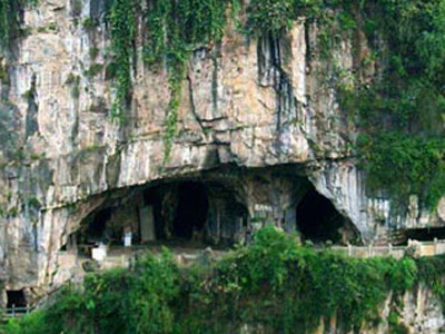三游洞前,是清澈碧透的下牢溪,水石相击,飞珠溅玉。沿洞旁小路登上山顶的至喜亭,西眺可见大江雄姿;在那峰峦叠嶂之中,长江像一把利斧,辟开一线通道