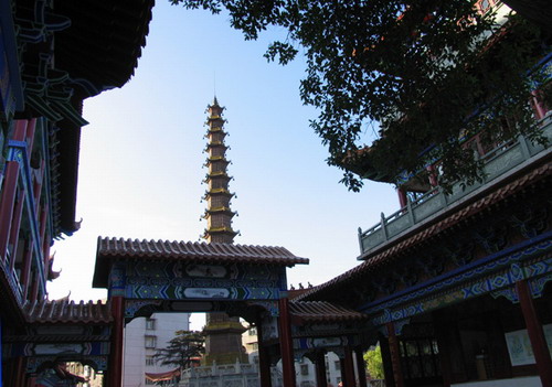 到了十四世纪,初的元朝泰定年间,在古章华台遗址上建了一座庙宇,初名章台寺,后改名章华寺。这章华寺规模宏大,庙貌雄伟,气象肃穆,环境清幽。与汉阳归元寺、当阳玉泉寺并称为湖北三大丛林。寺的主体建筑有大雄室殿、天主殿、韦驮殿、财神殿、藏经楼等。每一重都是画栋雕梁、盘龙据虎、翠彩轩翔、金碧掩映。 文化革命中,如来佛及四大天王等神象都被毁了,但缅甸国王送来的一座玉佛还在,藏经楼中尚有清代皇室专为章华寺颁发的全套藏经常八千卷(现藏市博物馆)。殿门边有清光绪年间所立的石碑,记载三个高僧艰苦创业及几次复修章华寺的事迹。