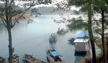 漳河交汇处的高山顶处,是一座军事防御石寨,居高临下,紧锁要道,大有“一夫当关,万夫莫开”之势。乐天处是清朝时修建的一个藏军洞,悬壁岩楼营造在陡峭石壁之腰,进可攻,退可守,集奇、险、妙、趣为一体,真是个“身外都非乐,洞中别有天”。青蛙岩又名蛤蟆石,它与青蛇岭、蜈蚣山呈“三怕”鼎立之势,这里流传着一个“三怕”的故事,即蛤蟆怕蛇、蛇怕蜈蚣、蜈蚣怕蛤蟆,正如俗话所说的:卤水点豆腐,一物降一物。  其实,漳河水库的枢纽工程本身也很值得一看。当你乘坐水库旅游专车来到漳河第一坝——观音寺大坝,站在坝顶,你可以尽情欣赏人类移山造海的杰作,也可以尽情领略大坝雄伟壮丽的英姿。观音寺大坝坝顶长630米,最大坝高66.5米。它有如铁壁锁住孽龙、造福沿岸黎民百姓。放眼库内,青山卷翠,绿水扬波,万千美景,尽收眼底;俯瞰坝外,电线纵横,这里有漳河最大的水力发电站,页码:[1] [2] [3] [4] [5] [6] [7] 第4页、共7页