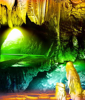 ![]() 据有关专家学者鉴定,该处的喀斯特典型地貌--2万多平方米“边池”景观,是世界溶洞之奇观。洞内景点有:济公仰天、云天飞瀑、石将军把关、忠狗牧羊、少女攻读、吉林雾淞、神牛饮水、大鹏展翅、蝶戏熊猫、锦绣河山、仙鹤顶月、古榕迎宾、龙潭飞瀑、黄仙宝塔……等等。使人观后不能不触景生情,羡天功之造化,叹人力所不及,更钟情于九洲,给人以美感,促人以遐思。