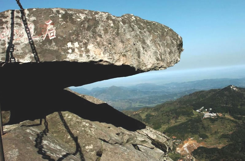 要登上龟头顶端,对于游人来说,是一次考验自己胆量的好机会。经过"冲担石"、"险八脚"这样的险处,宽不足一尺,下临万丈深渊,胆小者只能望而却步,如能征服艰险登上龟头,千嶂奇观,尽收眼底,白云缭绕,飘忽脚下,从山如丘。