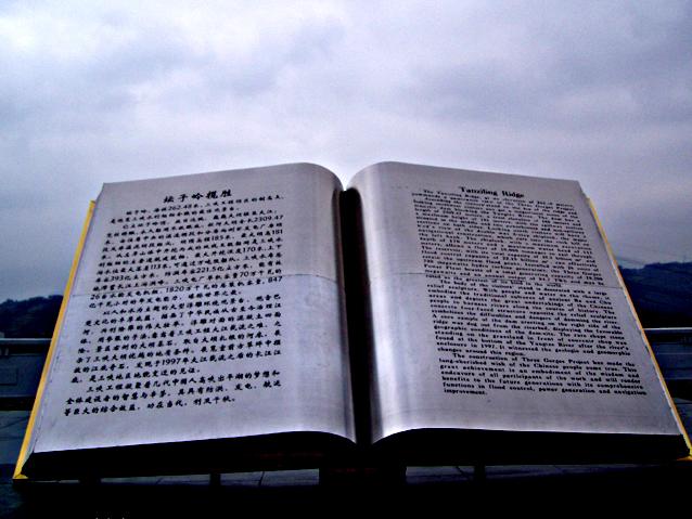 。他们的背景有传说中帮助大禹治水,后来化为巫山十二峰的的十二位仙女,还有三峡大坝建设和库区移民的场景等等。相对应的下游一侧的浮雕中心人物是一个现代青年女性与一位仙女,手持花朵、果实,背景有植物、动物、鱼类等,还有东方明珠、上海码头、外滩大楼、巴楚乐舞、大足石刻等等形象,反应了三峡工程对生态环境、沿江经济发展及旅游业等的促进作用。背面一块浮雕中心部位是传说中黄牛助大禹治水合力开峡的景象,峡石和流水向两侧展开,下面有纤夫、船夫、埋葬水难者的白骨塔、漂在水患中的孩童房屋等,场面十分悲壮。 【万年江底石】 这块江底石是二期工程修围堰基坑时从基坑里挖出来的,花岗岩的质地,重达20多吨,上面还有早期水电专家、地质勘探者考察坝址时钻探机留下的一些钻孔。"万年江底石"是习惯上的说法,实际上它距今已经有8亿年的历史了。人们可以从它身上了解长江古老的过去,它凝聚着中国几代人的梦想,现在梦想正在慢慢成为现实,使无数中国人不断激励自己、勇往直前、开拓新 页码:[1] [2] [3] [4] [5] [6] 第4页、共6页