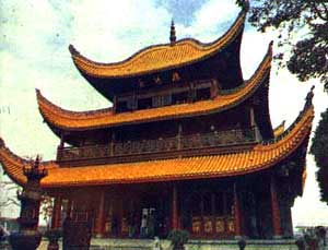 素有"洞庭天下水,岳阳天下楼"盛誉的岳阳楼踞于岳阳古城的西门之上,其气势之壮阔,构制之雄伟,堪称江南三大名楼之首. 名冠天下的岳阳楼构制独特,风格奇异.楼三层、飞檐、盔顶、纯木结构. 全楼高达25.35米,平面呈长方形,宽17.2米,进深15.6米,占地251平方米.楼中四柱高耸,楼顶檐牙啄,金碧辉煌.远远而瞭,恰似一只凌空欲飞的鲲鹏,尤显雄伟壮丽.