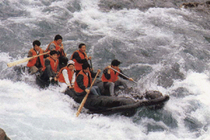 茅岩河的漂流段在大庸城西20公里青鱼潭往北的一段,这里虽然滩险流急,但河床坡度小,水位落差不大,险滩一般仅有20余米长,而且险滩与险滩间的距离又很长,所以在