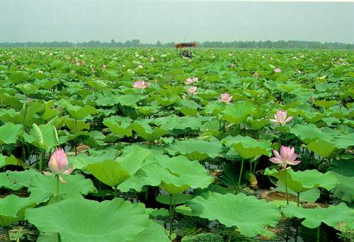 岳阳楼下的洞庭湖是远古时代云梦泽的遗迹,它的湖面十分宽广,自古就有“八百里洞庭”之说,虽然现在它的面积比以前已经小了一倍,但它仍是全国的第二大湖泊,烟波浩淼、水天一色,范仲淹称它“衔远山、吞长江,浩浩荡荡,横无际涯。”