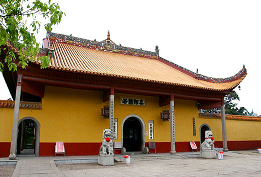 今开福寺占地面积4.8万平方米,建筑面积1.6万平方米。主要建筑有山门三大殿(三圣殿、大雄宝殿、毗卢殿)及两厢堂舍等。山门为四柱三门三楼花岗石牌坊式建筑,高10米。门坊上分栏为浮雕彩绘,或为人物,或为树木花草,色彩斑斓,栩栩如生。山门两旁立有石狮、石象各一对。进入山门,即放生池,为原碧浪湖残部,上架单拱花岗石桥,走过石桥,便见一座汉白玉观世音菩萨圣像,面带微笑,手执杨柳净瓶,九龙拥立,庄重中透着祥和。伫立像前,肃穆与敬仰之情油然而升,尘世的心便也多了几许平和与宁静。再往前行,便是开福寺的主体建筑三大殿。 ![]() 前殿为弥勒殿