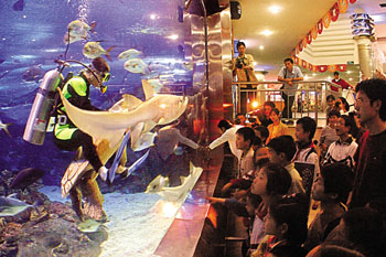 在浏阳河畔,金鹰文化城内,长沙海底世界南对319国道高速公路,如一颗的璀璨明珠吸引着广大的游客。长沙海底世界是一个占地面积100亩,投资2亿元人民币,集观赏、休闲、科普、游乐于一体的中国中南地区最大的海洋主题公园,是国家AAAA级旅游景区,长沙海底世界也是中国海洋学会和湖南省科协授牌的海洋科普教育基地。