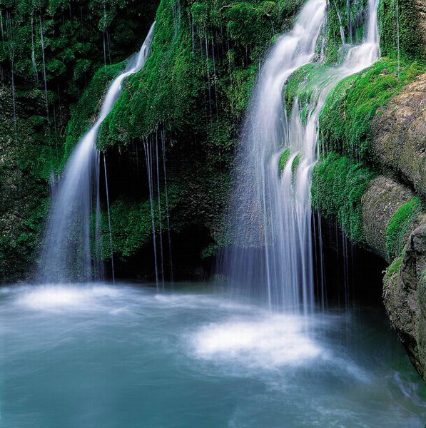 相山瀑布景象极为壮观:远望,苍岩翠壁中,“一条界破青山色,瀑布长如白练飞”,宛如一幅绮丽的山水画;近观,瀑布从两百多米高的悬崖上飞泻直下,落地激