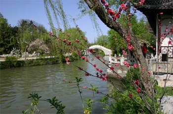 门内是一池清水,遍植荷花, 池周点缀各种形态的山石,几株翠柳迎风飘 舞,景色宜人。园内正厅叫 “听鹂馆”,构造精致,陈设古雅。正面有红木护墙板壁,屏风式样,每屏有清代山水瓷画五块,外复玻璃,工艺精美。 小金山是湖中一小岛,原名长春岭,建于清代中叶。当时扬州干绅 为了打通瘦西湖至大明寺的水上通道,
