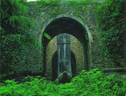 明楼以北的山坡,地下由两种不同岩石组成,西侧是下中侏罗纪的砾岩,东侧是稍晚的长石石英砂岩。由于西侧岩石硬度强,开挖困难,考古专家根据宝城内的地质特征,认为应不排除存在这样一种可能:当年明孝陵的建筑工程主持者已注意到本地岩石性差异,而修改原有的施工方案。 当然,这只是对明孝陵墓道偏于宝城一侧起因的一种推测。此外,还有两种说法:一是陵宫前对梅花山,这里是孙权陵墓所在,朱元璋曾说过要孙权这条好汉为他看大门,所以神道不得不改直行弯;二是朱元璋是农民出生的皇帝,做事不拘成法,勇于创新,在陵寝建筑上也别出心裁。 谜团之三:“龟趺驮碑”究竟何用 在四方城东南约100米的山谷里躺着一只石龟,它的头朝向山谷(东南方)的出口,似乎一直想爬出那幽深的帝陵区。人们在距龟趺30米处又发现了一通碑材横卧于地面。碑材两端有榫,其中一榫正好是插入龟趺背上之孔槽尺寸。这说明它们属配套的一件文物,即“龟趺驮碑”。这件文物位于明孝陵大金门内、孝陵神功圣德碑亭之东,两者处于东西同一直线上,时代相同,体量庞大,却碑上无文。它是干什么用的?文物专家至今没有解开这个谜。 谜团之四:明孝陵为何呈“北斗”布局 尽管孝陵建造时间绵延了30多年,但其规划设计应大体上是一次完成的。考古专家在明孝陵考古调查中发现,从平面上观察,孝陵主体从大金门经神道直到宝城,其布局呈北斗星状。 考古专家们认为,朱元璋在他的陵寝规划设计上采用象征手法,以北斗作总体规划,既吸纳中国古代,尤其是元、明时代人死后“魂归北斗”的思想,又采取了天帝所居北斗并被“四灵”相绕的神秘布局。