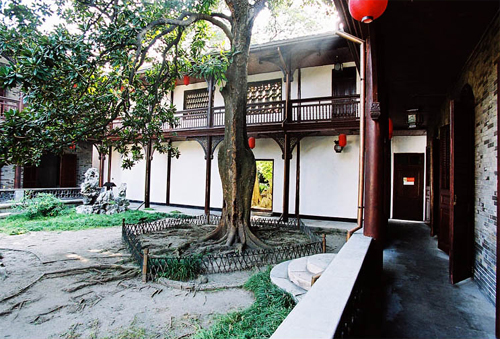 何园,为清光绪年间道台何芷于“双槐园”旧址上所筑,园内有大槐树两株,传为双槐园故物,今仍有一株。