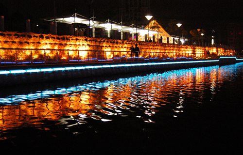 环西文化广场、文化宫、文峰公园、映红楼、体育公园等新兴的文化娱乐场所和旅游景点,以及28座桥和各种名木古树。清澈洁净的濠河与亭、台、楼、阁、塔、榭、坊等交相辉映,人文景观与自然风光融为一体,千百年积累的历史遗迹、园林艺术、乡俗风情奠定了濠河古朴凝重的文化底蕴,而现代城市的崛起,又赋予它朝气勃勃地时代风采。