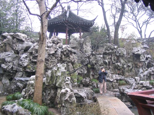 池水之北多建筑,博雅堂为园中主要厅堂,其南端有小院,设湖石花台,院南临池处,建有水榭五间,两侧厢房则与池水东、西两面的厢房相连。池水之南为假山,以土堆成,临处之处,则以湖石叠成绝壁、危径,既多变化又较自然。于池北远望此处,山石嶙刚,树木葱郁,给人以奇秀之美、山林之趣,成为园中的主要对景。此种以池水、石径、绝壁相结合的手法,为明清苏州一代造园家所常用,取法自然而又力求超越自然。