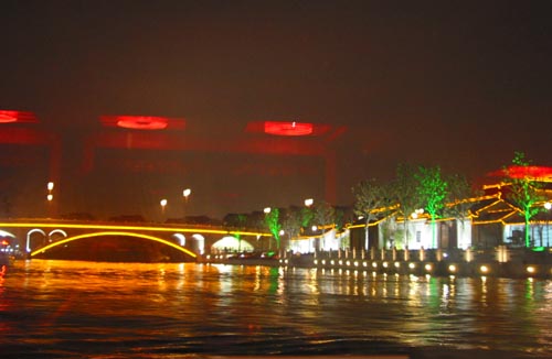 粉墙、小桥、驳岸垂柳、夕阳、小船在悠悠的水面上传播开去,很远,很远。。。。。。 直到传成一个个美丽动人的神话和悠远古老的传说。夜色弥漫,古运河伴您走进浆声灯影中的水天堂。。。。 专业从事古运河观光游览业务