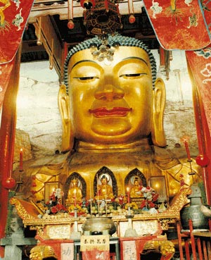 山顶平台还有御碑亭、碑廊,张山人故居等名胜景观。由平台东下石梯,即到兴化寺。兴化寺原名石佛寺或大佛寺,因北魏时于悬崖上凿壁石佛而得名。石佛高10余米,原来暴露于大自然间,饱受风雨剥蚀。至明洪武三十一年僧胜吉始建大殿,使石佛得有殿宇保护。此后又经毁建,到明正统元年,才建成现在这样的大雄宝殿。因殿依山而建,峭壁悬崖盖在殿内,又因悬崖峭壁与山体相连,每逢阴雨天,便有水渗入,或如瀑布,滴水自上而下,形成了殿内山水奇观。峭壁有无数洞穴,洞穴内有形态各异的佛像,与大石佛相映衬,更显大佛壮观。