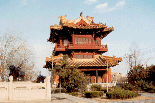 在徐州市区古黄河畔,矗立着一座双层飞檐的仿古高楼。这就是1988年修复的黄楼。历史上的黄楼是900年前徐州知府苏轼率领徐州军民战胜洪水之后,于宋神宗元丰年(1078年)八月在徐州城东门之上建造的。因为土能克水,所以涂上黄土,取名黄楼。黄楼内有许多碑刻,其中最著名的要数苏辙撰写,苏轼亲笔所书的《黄楼赋》。