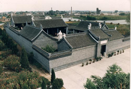一进纪念馆大门,首先映人人们眼帘的是耸立在天井内的一座汉白玉石雕施耐庵造像,该像仿照天津南开大学东方艺术系主任范曾教授创作的国画设计,是南京雕塑家、建筑家协会副会长叶宗镐先生的力作。施耐庵头戴方巾,身着宽袍,面容清癯,目光深邃,左手握卷,右手拈须,俨然一副愤世傲俗的书生形象。