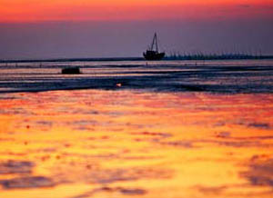 美丽富饶的如东县,位于江苏省东南部、长江三角洲北翼。地处东经120°42′—121°22′,北纬32°12′—32°36′,东面和北面濒临南黄海,西部与如皋市接壤,西北与海安县毗连,南部与通州市为邻。县境陆地西起河口镇曹家庄村西端,东止如东盐场东堤,长达68公里;南起掘港镇朱家园村南河界,北止拼茶新垦区,宽达46公里。全县面积(不包括海域)1872平方公里,人口110.11万(2002年末)。从空中俯瞰如东县,宛如一只“巨掌”,遏住了黄海巨涛,横按在辽阔的江海平原之上。而由岸滩处向大海伸展的一条条辐射沙脊,则是“巨掌”的“手指”。沙脊间的深槽可通海船,其最深处位于西太阳沙外侧烂沙洋,水深16-25米,为优良深水港资源,可建15-20万吨级深水码头。