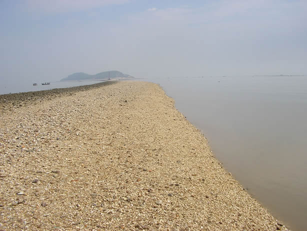 bsp; 传说,秦始皇看秦山岛距陆地太远,便挥动马鞭,驱赶巨石,铺垫成路。神路非常奇特,路中间的石头两边的石头迥然不同。中间的石头又高又大呈白色,而两旁的石头又矮又小呈黑色。