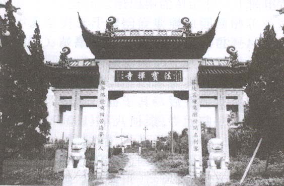 象鼻灣的正中是大雄寶殿,大殿在保持原有風貌的基礎上,吸納了蘇式園林的建築風格。殿宇巍峨,飛簷翹角,氣勢雄偉,十分壯觀。「大雄寶殿」四字匾額是原中國佛協會長趙朴初題寫的。殿內新塑八米多高的釋迦牟尼佛像,安坐在蓮花座上,兩側文殊、普賢二菩薩分乘青獅、白象。殿堂新塑的十八羅漢,金光熠熠,形態各異。大殿後新塑了海島觀音。觀音大士周圍一百三十八尊彩色佛像,飄然而降,乘風破浪,令人肅然。大殿四周欄杆,有數十對漢白玉石獅