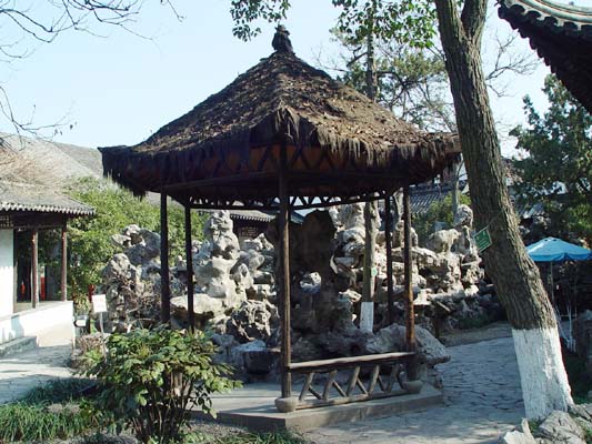 右边平台上的那座建筑,是桐音馆,是煦园内最大的建筑物,其建筑材料都用桐木。桐音馆是当年洪秀全与部下商议国事的地方,取上下同心,异口同声的意思。在桐音馆北面的一组假山群中,有一块石碑,上有道光皇帝御笔“印心石室”4个大字。据说当年的两江总督秦澍少时家贫,却整天坐在溪流中的大石块上专心研读,后来终于功成名就。道光皇帝有感于他潜心钻研的精神,赐“印心石室”4字,用来勉励后人。