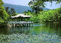 南京中山陵风景区流徽榭在中山陵至灵谷寺公路的南边,又名水榭亭,1932年由中央陆军军官学校捐建;榭长14米,宽10米,顶为乳白琉璃瓦,红色立柱;三面临水,碧水如镜,倒映水榭,别有情趣。