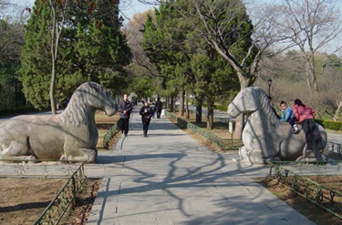 陵墓入口处有高大的花岗石牌坊,上有中山先生手书的“博爱”两个金字。牌坊这类建筑在功能上主要是用来歌功颂德的。“博爱”两字正点出了孙中山先生博大的胸怀和崇高的理想。石坊后是长达375米、宽40米的墓道。前行为陵门,它以青色的琉璃瓦为顶,门额上为孙中山的手迹“天下为公”四个大字。