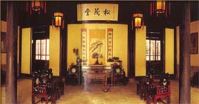 沈厅典故沈厅原名敬业堂,清末改为松茂堂。由沈万三后裔沈本仁于清乾隆七年(1742年)建成。据清《周庄镇志》记载:“沈本仁早岁喜欢邪游,所交者皆匪类。及父殪,有人言:‘不出三年,必倾家者。’本仁闻之,仍置酒,召诸匪类饮,各赠以钱,而告之曰:‘我今党为支撑门户,计不能与诸君游也!’由是,闭门谢客,经营农业,于是居大业堂侧拓创