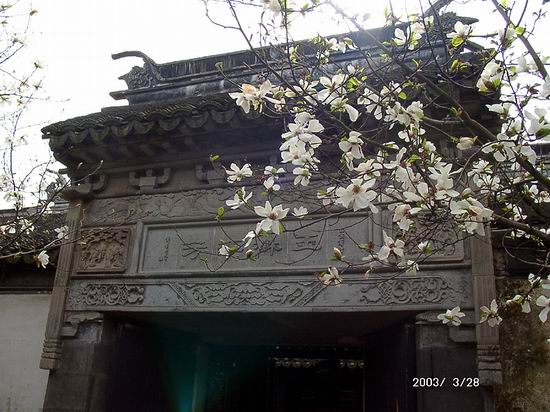 ![]() 来自大都市的游客走进张厅,穿过狭窄的陪弄,来到箸泾穿越的后花园,显然不是为了寻求惊险。他们可以走过架在箸泾之上的廊棚,欣赏河中小船,也可以穿戴明清服饰当一回历史人物。那些普通的民居、门窗和梁檩笼罩着岁月的烟尘。围坐在小方桌旁的老老少少,边往碗里夹菜边谈论家常,全然不顾从陪弄穿梭而人的游客投来探询和纳罕的目光。在游客们看来,居民们的装束、容貌乃至碗里的虾糟烧鱼、韭菜炒螺蛳,都是值得一看的。“轿从门前进,船自家中过”的张厅,袒露的是最具体的现实,连同一份安谧温馨的水镇情趣。它唤醒了游客的怀旧意识,于是,感慨、