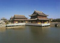全福讲寺处于全园中轴线,主要建筑有:山门、指归阁、大雄宝殿、藏经楼等。整座寺庙结构严整,殿宇轩昂,黄墙露瓦,雕梁画栋,蔚为大观。借水布景,巧夺天工,楼阁殿宇,鳞次栉比。既有佛教文化的博大精深,又有建筑艺术的美伦美奂,园林景色,如诗如画,令游人流连忘返。