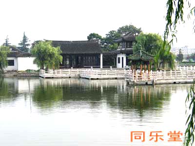 近水楼台同乐堂 五岛公园中的同乐堂,最是典丽雅致的所在。排排幢幢苏州园林风格的建筑,使游人瞩目钟情,流连忘返。 游人步入大门,便是紫藤长廊。斑驳的阳光从藤架上洒落下来,在鹅卵石铺成的小径上,闪闪炽炽。走进"入胜"门,迎面是堆云砌雪的花坛,香气扑鼻,令人陶醉。经回廊至正厅,犹入殿堂。堂内宫灯高悬,四壁字画生辉。顶处倒梁叉柱,错落有致。壁间门窗联扇,精雕细刻。游人可在此把盏品茶,小憩赏景。出后门,上平台, 水榭亭阁相叠。凭栏观近景,水波荡漾处,游鱼可鉴,飞泉挥洒下, 银花四溅;登阁眺远处,半壁涟水城,尽收视野,满街人流动,游目 弛怀。. 其实,只要在同乐堂中,随便依偎闲坐在楼台水榭间,于微风 吹拂下,或对朝阳,或对柳荫,或对夕辉,或对明月,都会令人感到 满足,感到惬意。诚所谓其情也融融,其乐也陶陶。 据"同乐堂碑记"言,其始建于1937年,意为"王公与民同好 恶,共忧乐也。"人事沉浮,兴废交替,昔日"同乐堂"早已与"王公" 者流一道去也。1987年,涟水县人民政府重新同乐堂,其意页码:[1] [2] [3] [4] [5] [6] [7] 第6页、共7页