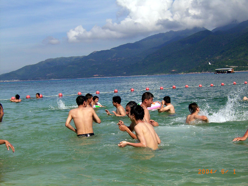 他们来到滩涂腹地的踩蛤场,看到当地渔民正用双脚踩踏。几位美国客人感到很惊奇,为什么原先空无一物的沙滩上经过渔民一顿踩踏,便会出现一只只色彩斑斓的文蛤?渔民们按照古老的踩蛤方法,向客人们作了详细介绍并示范表演一番。外国客人便依样画葫芦两脚分开,晃动腰肢,用力踩踏均匀移动,待沙土踩活之后,脚板底下那滑溜溜、泥乎乎的文蛤便一只只露出滩面,俯拾即是。当你将泥沙洗去,壳上精美的花纹便显露出来,令人爱不释手。踩文蛤的动作极富韵律感。不知是谁,按着踩踏的节奏,哼起了“阿里巴巴”的流行歌曲。太平洋彼岸来的客人们一边