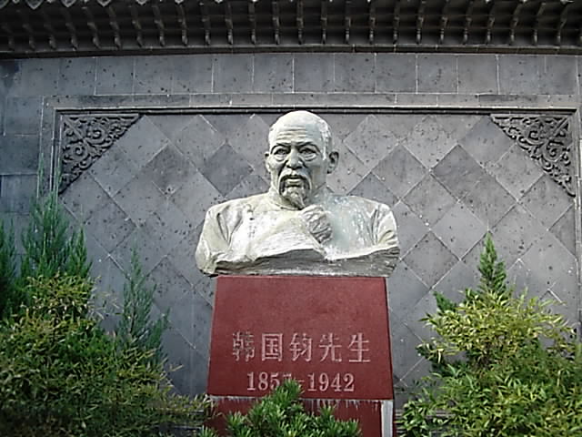 沈柔坚、王学仲、刘文西、萧劳、萧娴、郭化若、赖少其、刘艺等全国著名书画家。集全国(包括台湾省)各省、市书画家之大作,汇现代书法、篆刻、国画优秀作品于一堂,这批极为珍贵的文化财富,堪称海安县博物馆的镇馆之宝。 故居四进厅屋的槅门极有特点,不仅制作玲珑精致,且用冰花玻璃衬映花饰。每扇门下部均雕有阴刻图画,或“梅兰竹菊”,或“八骏马”,或各种花鸟,或各式山水,使这些槅门显得十分清雅素美。连接二、三两进的回廊壁上,镌刻清代嘉庆海安巡检司萧海清撰书法家仲贞子以真草隶篆四体书写的《海安三塘十景》,诗词书篆,珠联璧合。  出堂屋东侧六角小门进入火巷,眼前一道高墙将故居与东邻隔开,高墙上漫天铺地长满了绿色小叶的爬山虎,枝蔓缠绕,重叠碧翠。地面上那条条砖缝中长满了绿苔的巷道,似一条青灰底色上织满了绿色小格的地毯,由二门前小院一直铺到一座火车车厢式的小洋房前。这座小洋房据传系由毕业于上海同济大学土木工程系的韩国钧四子韩宝琨设计,距今约有80年。其模仿火车车厢的内部设计,别具一格,世人称奇。西式房顶下,内置乳白色拱形天花板,以优质木材作板壁,所有窗扇皆设3层:一百叶、二网纱、三玻璃,主人可按季节、天气之变化而替换。地面铺贴彩绘瓷砖,至今仍色彩鲜艳,坚固光滑。北室为客厅,南室为韩国钧卧室。外为四面吊顶走廊,上饰木质西式图案,下装栏杆。南侧小院内筑一淀水池,并延伸至小洋房之下,既可储蓄天水,又可调节房内气温。这座西式洋房在一组晚清建筑中分外引人注目。此外,这里还是载入华中抗日战争史册而闻名遐迩的“苏北联合抗日座谈会会址”。