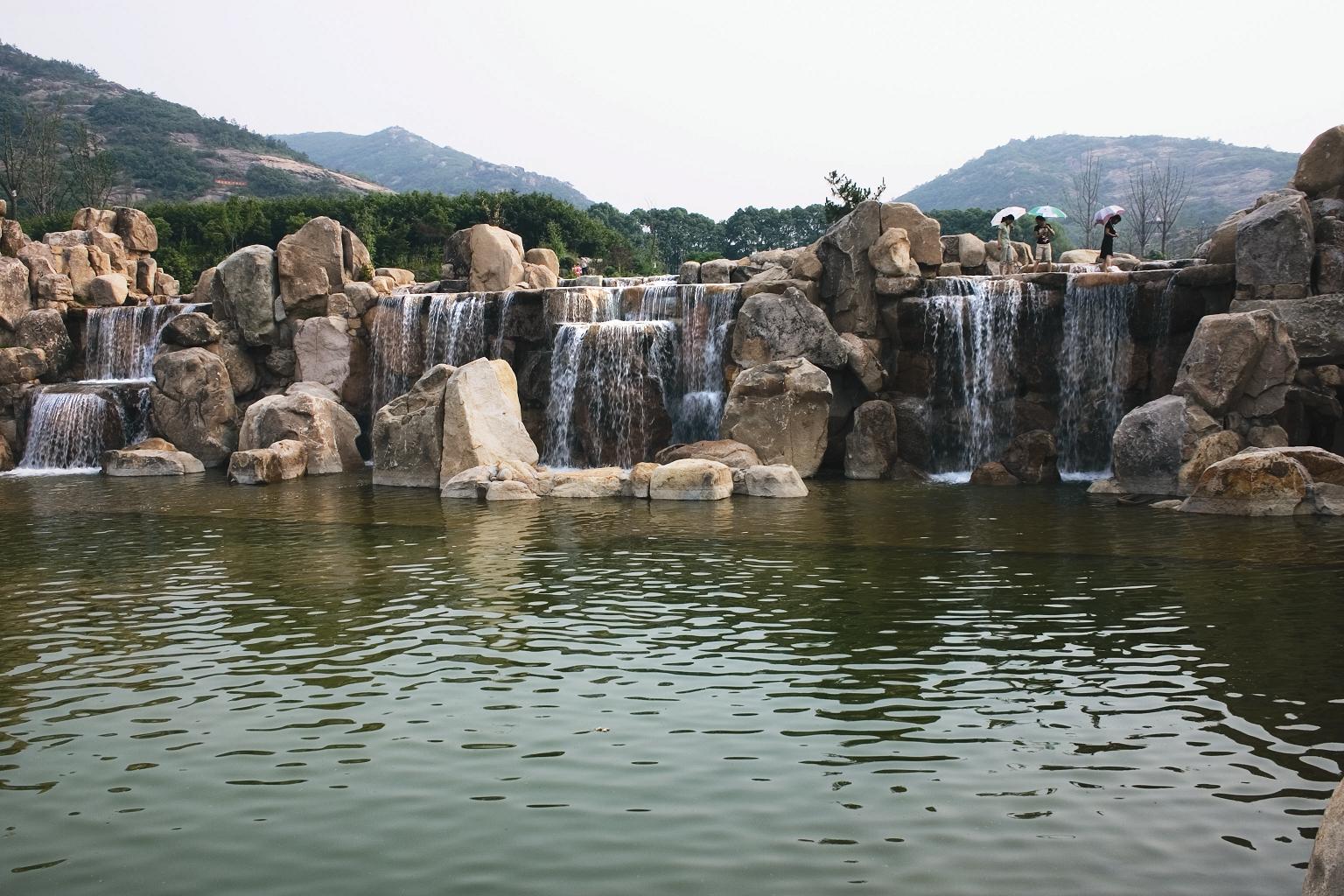 上游为龙池,又名胜天水库,重建于1952年,为原苏州地区乃至江苏省建库最早的水库。湖面面积20000平方米,容积水量约80000立方米。属天然雨水和山泉,水质清澈,无污染,是历年来游泳的最佳场所。三山相拥,乾隆御碑题曰"明镜漾云根"。临水的有水滨步道、天工石韵、十里木栈,其中水滨步道是龙池风景区乘凉、观景的中心位置,面朝龙池,放眼望去,山水尽入眼帘。近百棵高8米的古香樟树下,是原生态绿色大茶吧,可容纳500人同时纳凉,提供茶水、风味小吃,所谓大树底下好乘凉,实为消暑纳凉休闲场所。 中游凤潭水面面积11200平方米,可乘竹筏休闲。中游溢水形成云谷飞瀑,瀑布面宽40米,自然溢水加人工循环,瀑布场面宏伟壮观,是令人最赏心悦目的地方。下临游泳池,该游泳池免费供游客游泳,并配备专业救生员,卫生条件经主管部门验收合格,并颁发卫生许可证,池内可容