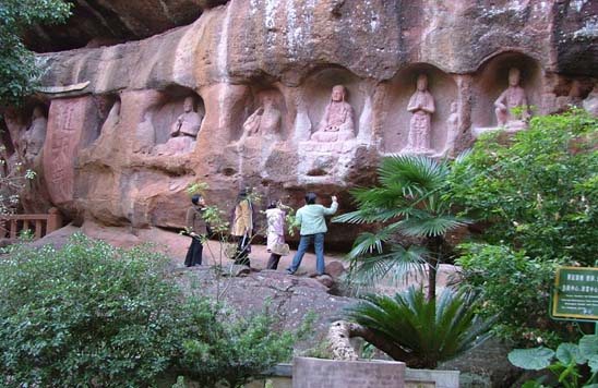 2、唐末五代时,赣南相对是*安定、经济繁荣 社会安定,才能使宗教文化艺术得到发展,经济繁荣,才有可能为石窟寺这种耗资巨糜的工程提供充足的资金。 3、佛教盛行,僧人官绅捐资是直接原因 唐末到宋代,赣州的佛教十分盛行,五代后梁时的节度使卢光稠,就曾将自己的东花园捐舍为寺院,并出资铸造了高达6米的观音大士铁像,赣州城在唐代基础上发展起来的寺院,如光孝寺、马祖岩寺、慈云寺等,到北宋时期已有十余屋。在崇佛之风大盛的社会风气之下,必然会对石窟寺的营建起到促进作用。再从通天岩石窟保存的造像记来看,僧人、官僚、士绅的捐资,的确是对通天岩石窟的开凿起到了直接促成作用。 4、地处赣州城郊,有得天独厚的条