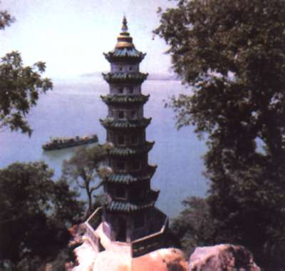 石钟山坐落在湖口县双钟镇,雄峙于长江之滨,鄱阳湖口,三面临水,一面着陆,形如半岛,海拔61.8米,相对高度约40米 左右,面积仅0.2平方公里。因山石多隙,水石相搏,击出如 钟鸣之声而得名。尤以北宋大文学家苏轼曾夜泊山下,寻声探 源,并撰写闻名天下的《石钟山记》而相得益彰。 石钟山地势险要,陡峭峥嵘,因控扼长江及鄱阳湖,居高 临下,进可攻,退可守,号称“江湖锁钥”,自古即为军事要 塞,成为兵家必争之地。登临山上,既可远眺庐山烟云,又可 近睹江湖清浊。如在月色之夜,可谓“湖光影玉壁,长天一月空”。
