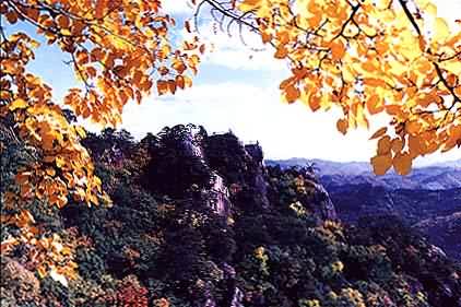 头似蛇背,长20余米,宽10米,峰头西端,撅起一巨大石柱,呈四棱形,高7米,直径约20米,由东稍北倾斜,状如鹅头,故俗称鹅头峰。西南北三面均为峭壁深渊,唯东一面可行。