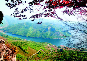 弃船登岸,攀树拽藤,顺着峡谷登上峰顶,仰望碧空,浮云游动,苍鹰盘旋;近山峥嵘,松风解带,蝶恋花舞,鸟弄歌声;远山如黛,烟波浩渺,山水相连,交相辉映;俯视江面,凫与鸳鸯戏碧水,群鱼奔游跃银波。置身峻峰怀抱里,别有天地非人间,心中升起无限憧憬,恰在朦胧梦幻中,似一幅彩色的风景画,如一首清新淡雅的抒情诗。
