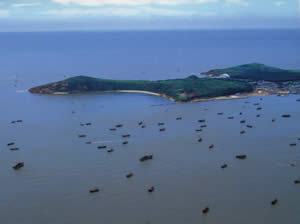 仙人岛是一个伸向海中的半岛,三面环水,从远处望去,它像一支伏卧在海边的兔儿,因形得名,又称兔儿岛。 仙人岛的名字则来自于两种传说。大家都听说过“八仙过海”的故事吧?