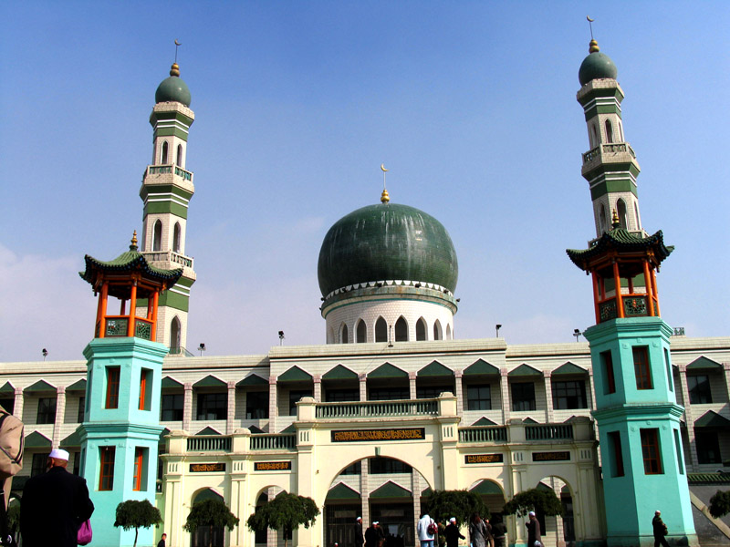 东关清真大寺,位于西宁东关大街东大街路南一侧,初建于明太祖洪武十二年(1380年),至今已有600多年的历史,历代几经修葺、扩建,规模日臻宏大,现已是我国西北地区最大的清真寺院之一。总面积11940平方米,礼拜堂面积1102平方米。寺院坐西面东,具有我国古典建筑和民族风格的建筑特点,画梁雕栋,玲珑精致。大殿为主体建筑,墙壁用青砖砌成,面宽5间,单檐歇山顶,高大的单体建筑矗立在突起的台基上,屋面装饰彩色硫璃瓦,殿脊装饰藏式馏金宝瓶。殿前左右有邦克楼和望月楼,均为3层,再前为西式大门、二门。寺院宽敞,平时可容3000名教徒礼拜,最多达万人,是我国西北地区伊斯兰教的教育中心和最高学府。