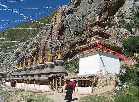 1300多年来,这儿都是一年四季香火从不间断,酥油灯昼夜常明,前来朝拜的藏汉群众也络绎不绝,亲如一家。 文成公主是唐太宗宗室女,唐贞观十五年(641)与吐蕃松赞干布联姻。文成公主一行从长安出发,途经西宁,翻日月山,长途跋涉到达拉萨。据传,玉树县的贝纳沟是文