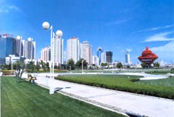 是东海路11处位于市委,市政府大楼南,香港中路与东海西路之间,是城市东部新的休闲旅游中心。广场以东海路为界分为南北两部分,中轴线上市政府办公大楼、隐式喷泉、点阵喷泉、“五月的风”雕塑及海上百米喷泉,富于节奏地展现出庄重、坚实、蓬勃向上的壮丽景象,在大面积草坪和风景林衬托下,更加生机勃勃,充满现代气息。主体雕塑“五月的风”以螺旋上升的风的造型和火红的色彩,充分体现了“五四运动”反帝反封建的爱国主义基调和张扬腾升的民族力量。作品与周围海天自然环境以及园区宁静典雅、舒适祥和的氛围有机地融为一体,形成园区蔚为壮丽的景观。