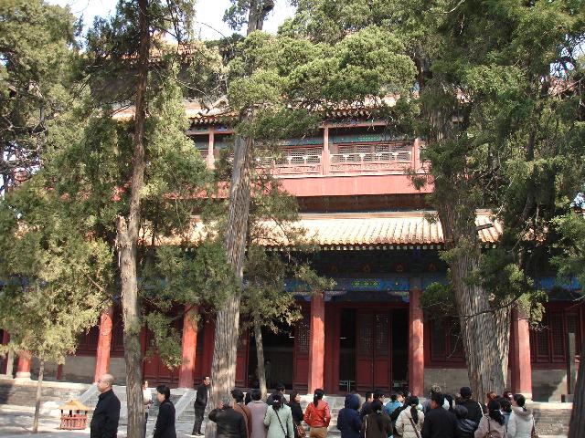圣时门 据《孟子》记载:“孟子曰:‘伯夷,圣之清者也;伊尹,圣之任者也;柳下惠,圣之和者也;孔子,圣之时者也。’”意思是说,在圣人之中孔子是最适合时代的。据此,清世宗于雍正八年(1730年)钦定孔庙正门名“圣时门”。圣时门始建于明永乐十三年(1415年),3间,弘治年间扩为5间中设拱门3 券,碧瓦歇山顶,四周是深红的墙皮,券内是杏黄的墙里,前后石阶上各有石刻龙陛。由拱门内望,令人有深邃莫测之感。 过圣时门,豁然洞开,偌大一个庭院,古柏森森,绿荫匝地,芳草如茵。迎面3架拱桥纵跨,一水横穿,碧波涣涣,荷叶田田,环水雕刻有玲珑的石栏。水“壅绕如壁”,故名“壁水”,桥因而利名,称“壁水 桥”。
