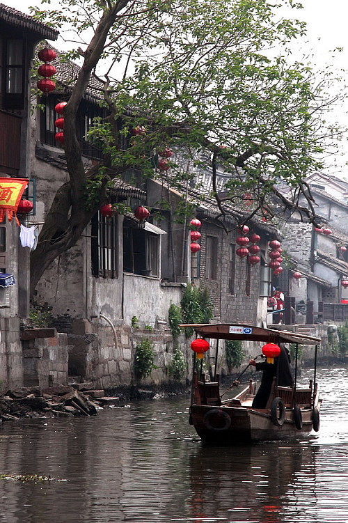 进入三间四柱的“枫泾”石牌楼,沿着包围老镇区的市河和分叉小河,穿进“东栅”石坊,走过一条又一条的青砖石板的沿河老街,跨过一座又一座的石桥,一片又一片的古建筑群顺长达五里的河街铺展开来。每天清晨,河边桥堍的茶馆就茶香飘溢,四乡的渔船穿过夹河的临水楼台、石河埠,集中到长长的临河廊棚前排成鱼市,河面上水波荡漾,正如民谣说唱的“一月螺蛳二月蚬,桃花三月甲
