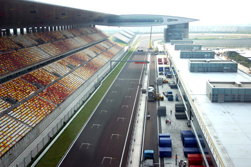 上海国际赛车场的赛道及主建筑设计由国际汽联指定的专业F1赛车场设计公司——德国惕克公司承担。现代设计集团上海建筑设计研究院牵头,上海市政设计院和上海市政研究院参与配套设计。 赛车场看台设计规模约20万人,其中主副看台5万个座位,其余为坡道临时看台。赛车场主体建 筑及其他主要建筑约15万平方米,包括主副看台、赛场指挥中心、新闻中心、车队生活区、维修站等。这些建筑采用了现代造型与中国传统文化融为一体的设计理念。建成后的上海国际赛车场将为上海这座充满活力的城市增添勃勃生机。与上海国际赛车场配套的轨道交通R3线赛车场车站区间相关配套工程和赛车场周边道路及市政公用等配套工程也已启动,并力争在今年3月底与赛车场同步建成