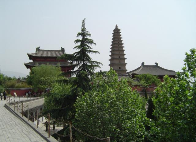 侧,古朴端庄,独立擎天。在明嘉靖三十四的那次大地震中也被毁掉了,现今我们看到的,是公元1563年重修的。塔内外呈四方形,塔檐呈微凹的曲线形式,这些都说明莺莺塔保留了某些唐塔的特征。