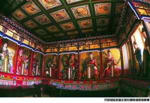 正殿前檐悬匾一块,上书“敕建’二字。正殿内,正中一龛,塑杨业与佘太君像。看到塑像那种饱经风霜、老而弥坚的神态,不*人肃然 看到这些塑像,人们不禁联想到当年杨家将征战疆场的情景。杨家将中首先令人怀念的,自然是一代忠良、为国捐躯的杨令公。《宋史·杨业传》记载,杨业曾在北汉任职29年,屡立战功,威镇边陲,人称无敌,累迁建雄军节度使。宋太平兴国四年(公元979年),北汉主刘继元降宋,杨业也随之归宋。宋迁杨业为代州知州,兼三交驻泊兵马都部署,副潘美以守山西,杨业遂移家于代州。太平兴国五年(980)三月二十日,契丹皇帝耶律贤亲率骑兵十万来犯雁门,杨业命部将断峪谷南口,自率千余骑北出勾注山西陉。契丹军于雁门