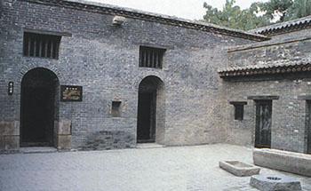 禁房两侧大墙半腰上的神龛,就是狱神庙口神龛中有3尊砖刻的神像。请看,中间坐着的是狱神,形象为老者,面色和善,凡是狱中的囚犯都要拜狱神,寻求一点安慰。狱神旁边站着的是小鬼,凶神恶煞,面目狰狞,仿佛在威胁囚犯只能老老实实,不能乱说乱动,不能在狱中有任何不轨。