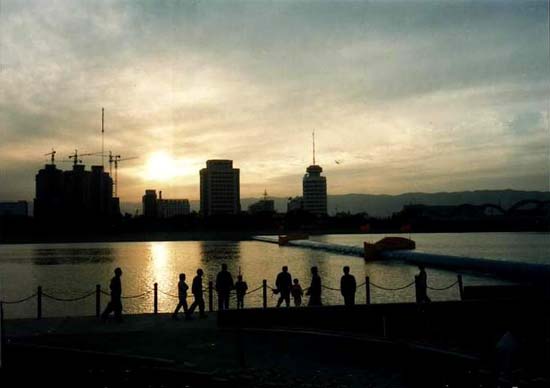 景区和7个观光景点。沿汾河西岸“晋汾古韵”广场上,治汾始祖台骀雕像栩栩如生,可追寻汾水的渊源;“梨园余音”广场上,戏剧脸谱古意盎然,展现了博大精深的三晋戏曲文化;“五环生辉”广场健身体育活动设施完备,活力四溢,充满动感。沿汾河东岸,可领略古晋阳八景之一“汾河晚渡”的绮丽动人景色;“雁丘景点”依汾河古老传说而建,元好问的千古诗句为此平添几分婉约;巧妙地利用了橡胶坝运行设施形成的“沙滩碧水”、“游泳池”、“钓鱼池”和“画舫”,充满现代体育健身特色,还有亲临水面的“日台”、“七亭”、“渡口”及“乐坛”等景点。在湖面上荡漾的游船及在主园路通行的观光车穿梭自如,可引游人游遍各个景区。凡有台阶的广场均专门设计了无障碍通道,欧式风格的商品售卖点平均分布,游览其间更觉方便轻松。 汾河公园湖面之上点缀有彩色橡胶坝、大型音乐喷泉、鸟岛、绿洲,现代与自然的交融,人与水的亲和,页码:[1] [2] [3] [4] [5] [6] 第2页、共6页
